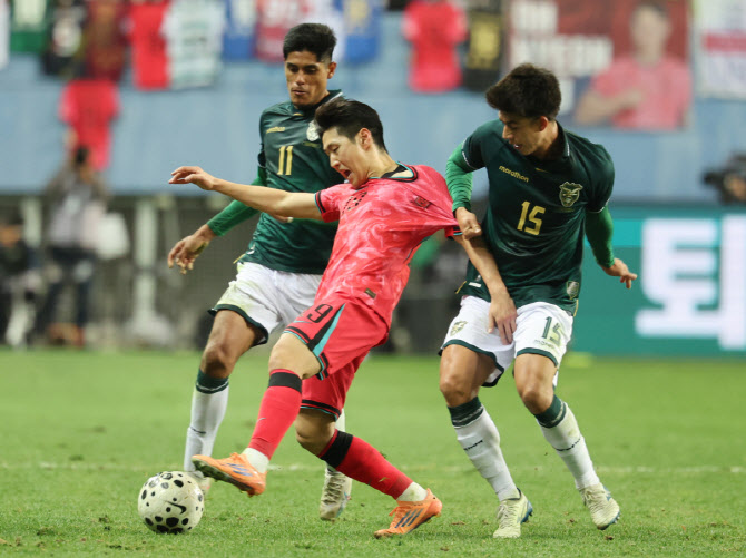 그만큼 볼리비아 수비진은 저돌적인 황희찬의 돌파를 거칠게 막아 세웠다. 황희찬도 물러서지 않았다. 경기 초반부터 맞상대인 디에고 메디나와 신경전을 벌이기도 하는 등 10차례 지상 경합을 벌여 7회 승리했고, 반칙도 3번이나 당했다. 후반 12분 나온 손흥민(로스앤젤레스FC)의 프리킥 선제골도 황희찬이 얻어낸 기회였다.