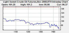 구제금융법안 부결 소식으로 인한 경기 둔화 우려는 국제유가를 큰 폭으로 끌어내렸다. 서부텍사스산원유(WTI) 11월물은 배럴당 10.52달러, 9.8% 내린 96.37달러에 마감됐고, 미국내 휘발유 값도 평균 3.642달러로 내렸다. 미국내 휘발유 값은 지난 7월 17일 갤런당 4.114달러의 최고치를 기록한 바 있다.
