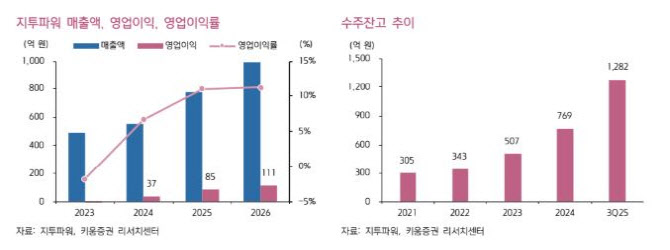 올해 실적 개선 흐름도 이어질 전망이다. 지투파워 2026년 매출액은 993억원, 영업이익은 111억원으로 각각 전년 동기 대비 28%, 30% 증가할 것으로 내다봤다. 영업이익률은 11% 수준까지 올라설 것으로 봤다. 지난해 말 기준 수주잔고는 1100억원을 웃도는 것으로 파악됐다.