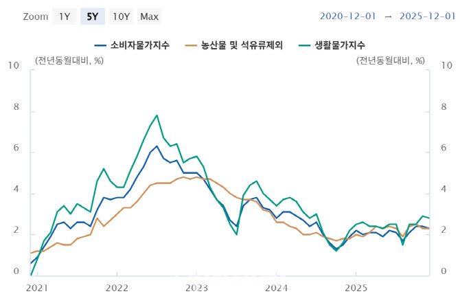 1월 소비자·근원물가 상승률 2%…생활물가 2.2%↑