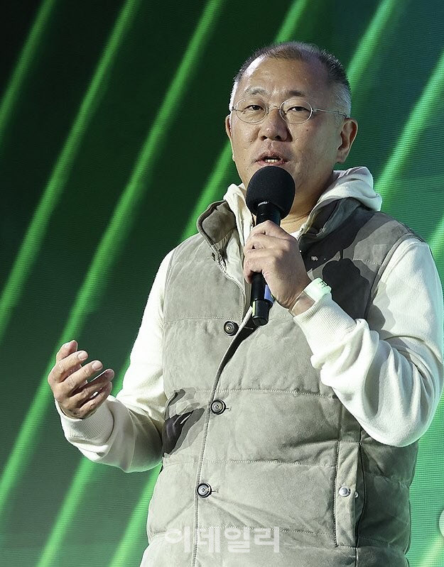 | | 정의선 현대차그룹 회장이 지난 30일 서울 코엑스에서 열린 엔비디아의 그래픽카드(GPU) ‘지포스’ 출시 25주년 행사에서 발표하고 있다. (사진=연합뉴스) |