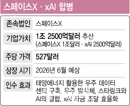 머스크는 2일(현지시간) “스페이스X는 xAI와 합병을 통해 AI와 로켓, 우주 기반 인터넷, 모바일 기기의 위성 통신, 세계 최고의 실시간 정보 교환과 표현의 자유 플랫폼을 아우르는 지구 안팎에서 가장 야심 찬 수직 통합 혁신 엔진을 구축할 것이다”고 말했다.