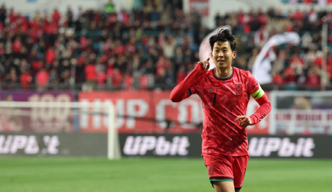| | 14일 대전월드컵경기장에서 열린 남자축구 국가대표 A매치 평가전 대한민국과 볼리비아의 경기. 손흥민이 골을 넣은 뒤 세리머니를 하고 있다. 사진=연합뉴스 |