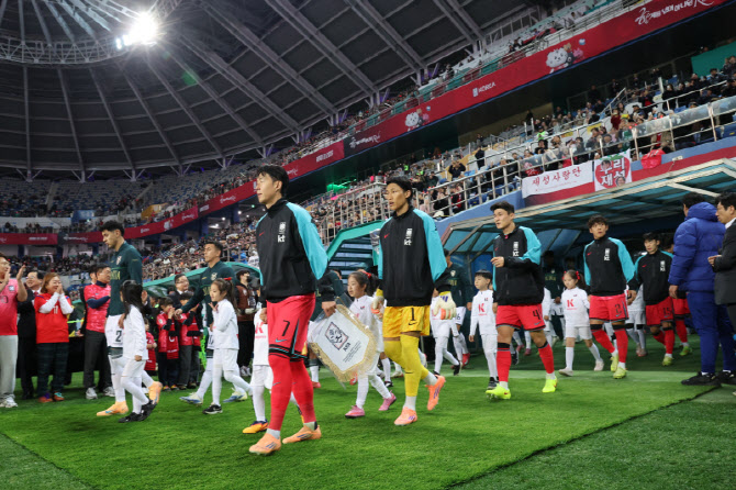 | | 손흥민 등 축구 국가대표팀 선수들이 14일 대전월드컵경기장에서 열린 남자축구 국가대표 평가전 대한민국 대 볼리비아의 경기에 나서고 있다. 사진=연합뉴스 |