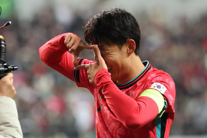 | | 14일 대전월드컵경기장에서 열린 남자축구 국가대표 평가전 대한민국 대 볼리비아의 경기에서 손흥민이 프리킥으로 선제골을 넣은 뒤 '찰칵' 세리머니를 하고 있다. 사진=연합뉴스 |