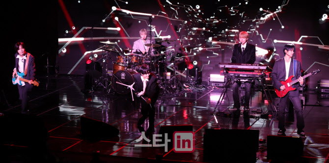 [이데일리 스타in 방인권 기자] 밴드 캐치더영(CATCH THE YOUNG·강산이, 안기훈, 김남현, 이준용, 최정모)이 19일 서울 강남구 청담동 일지아트홀에서 열린 첫 정규앨범 ‘이볼브(EVOLVE)' 발매 기념 쇼케이스에서 멋진 무대를 선보이고 있다.