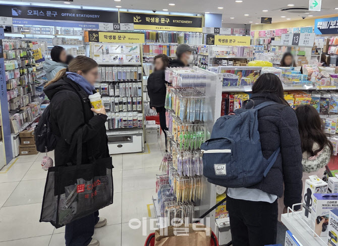 명동 다이소 2층 문구 코너에서 외국인 관광객들이 쇼핑을 즐기고 있다. (사진=한전진 기자)